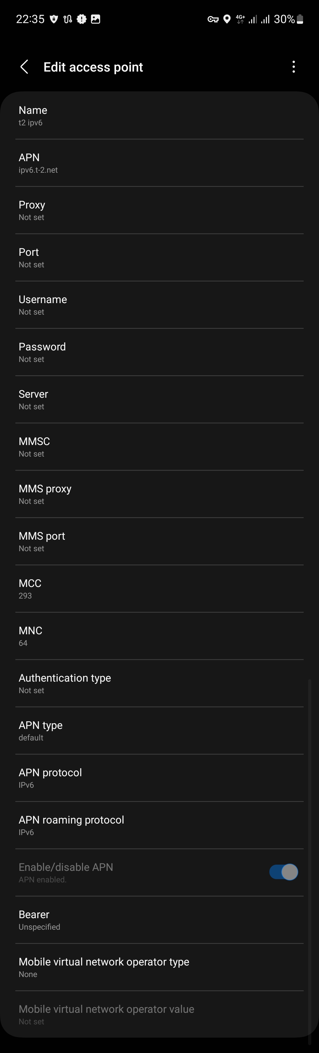Nisem sicer čisto prepričan, če je to pravilen seznam, ker vsebuje "T-2 d.o.o" in "Telekom Slovenije", medtem ko se (vsaj na mojem) telefonu pokaže "T2-Slovenia" in "MOBITEL" v seznamu omrežij ter "T-2" v ta zgornji vrstici. Tako da očitno obstaja več teh seznamov, ki imajo različna imena operaterjev?
